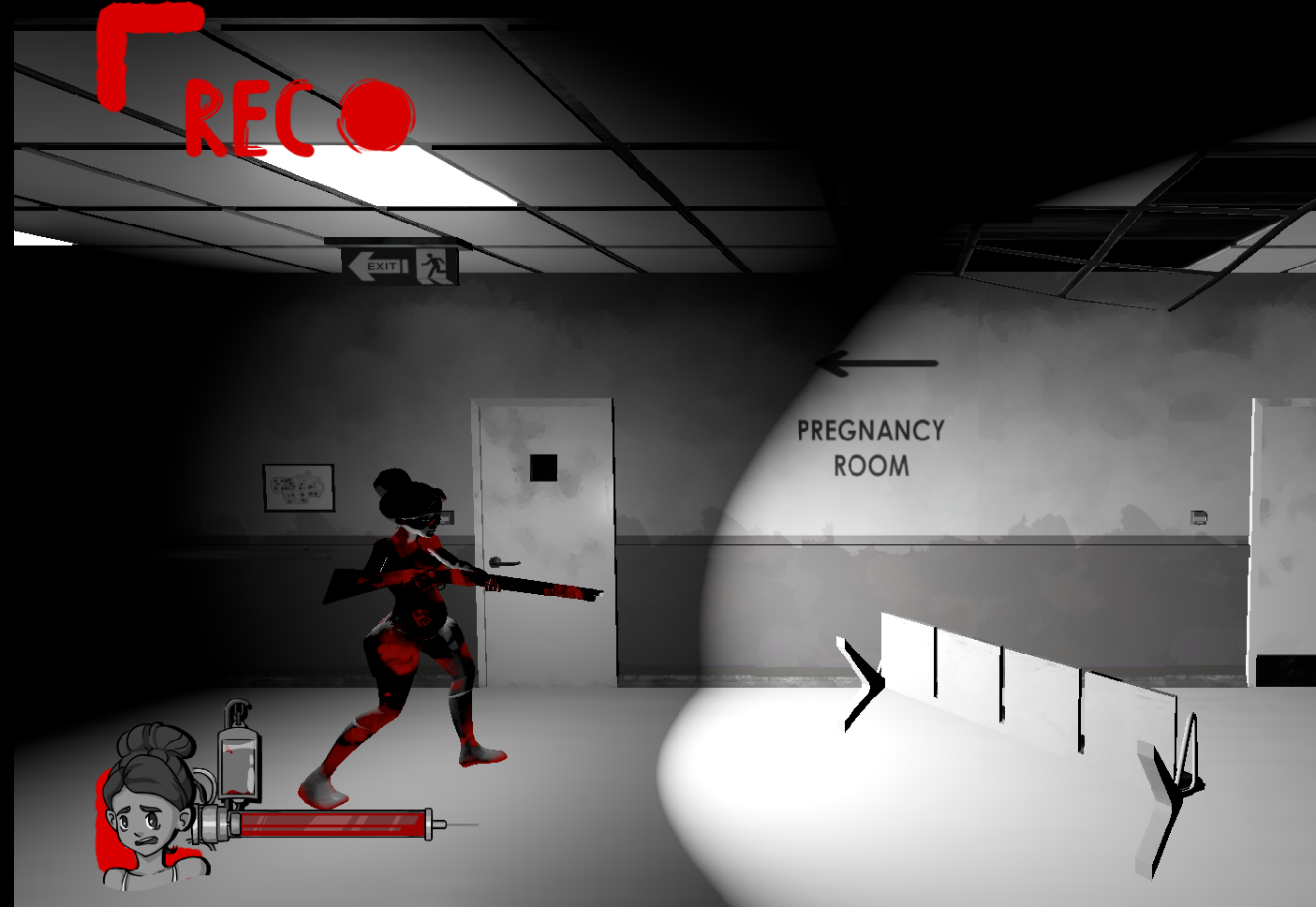 Dans un univers en noir et blanc, où seul le rouge du sang perce l'obscurité, le joueur traverse une vision cauchemardesque de la maternité. Chaque tir, chaque cri résonne comme une contraction. Chaque pas rapproche de la délivrance… ou de la fin.